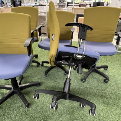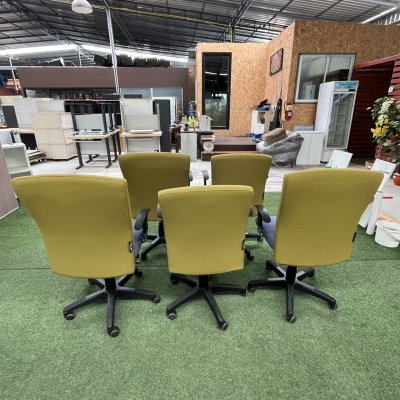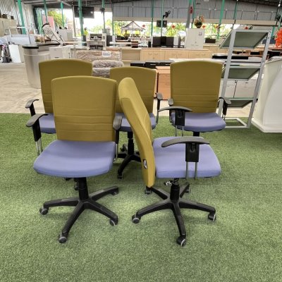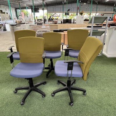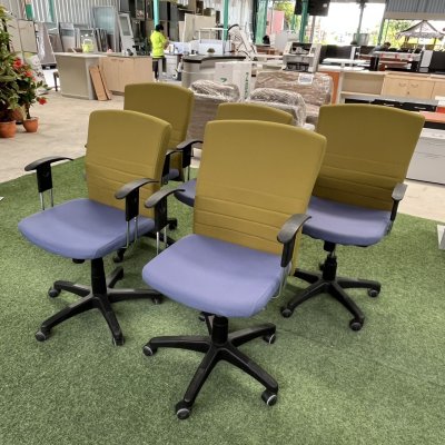 เบาะผ้า ปรับระความสูงได้ ที่พักแขนปรับระดับความสูงได้ มีล้อเลื่อน